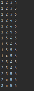 수열 {1,2,3,4,5,6} 에서 4개를 뽑아 조합을 만든다.