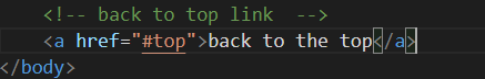 back to the top 링크 클릭시 top of the page 로 이동.