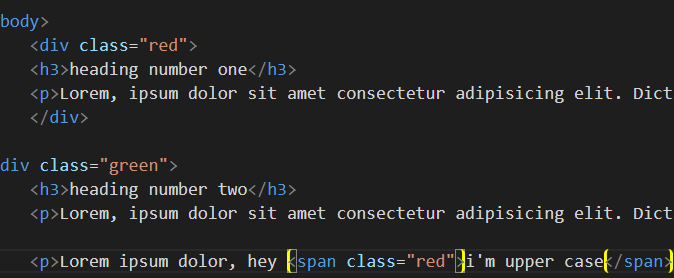 span은 "i'm upper case " 라는 문자열을 감싸고 있고 class="red"로 설정했더니