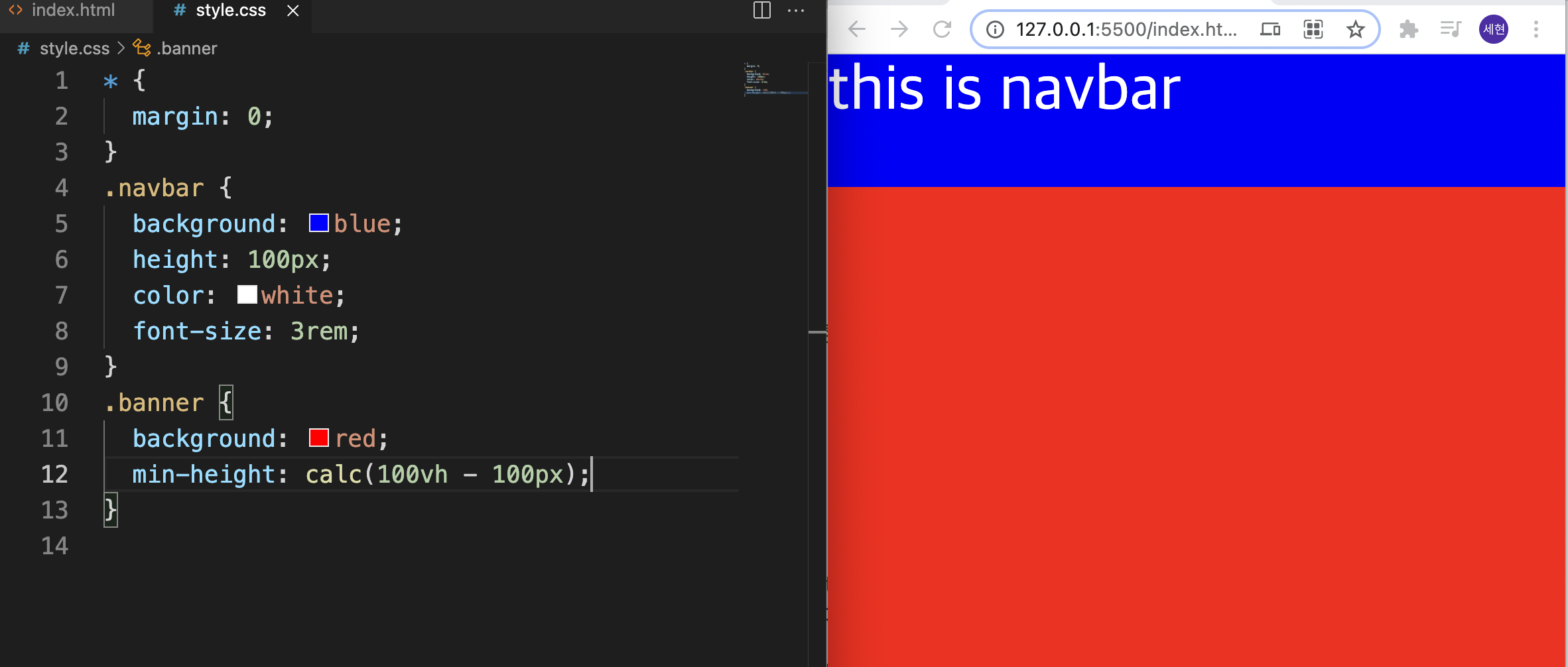 우리가 원하는건 스크롤 없이 화면에 navbar와 banner가 들어오도록 하고싶다.