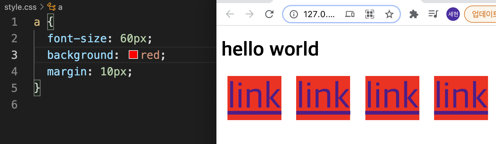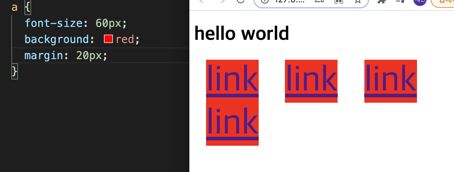 margin을 5px를 줬더니 <a> 태그의 링크가 서로를 침범한다.