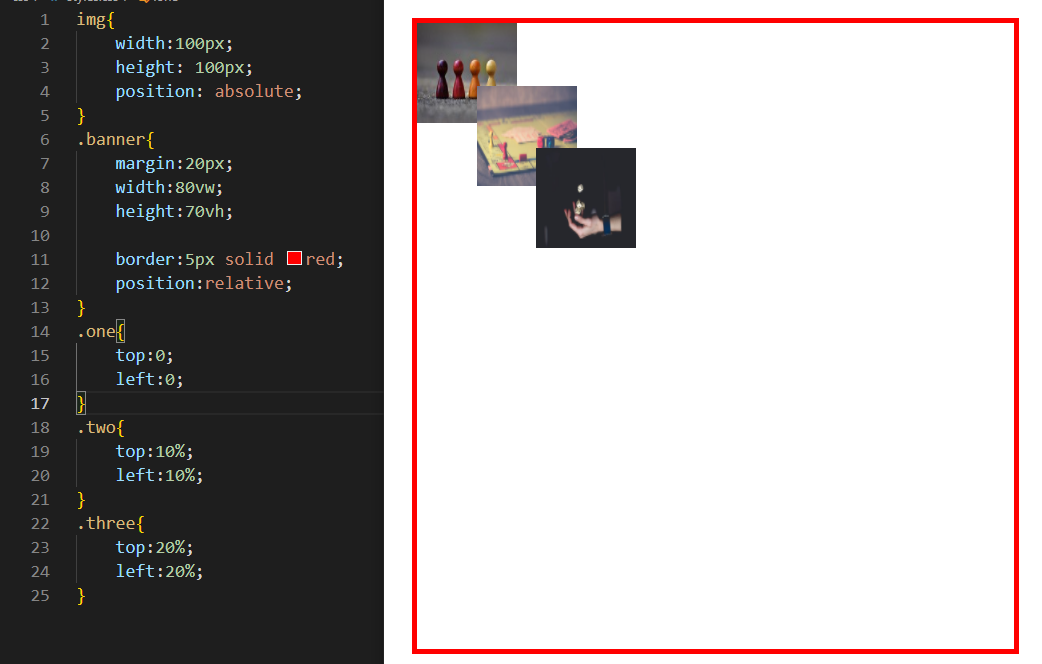 다음과 같이 세개의 이미지에 각각 z-index를 부여한다