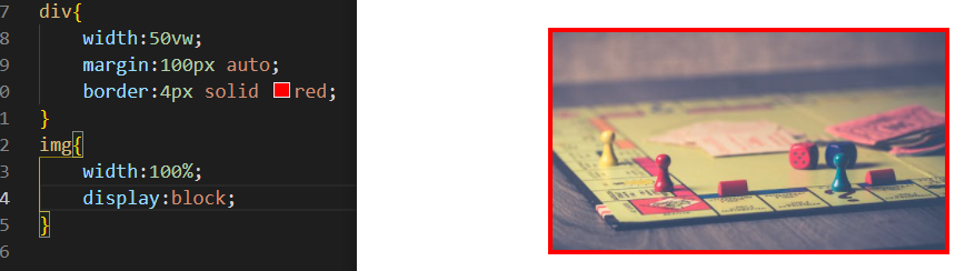 <img>는 <div>의 자식이기 때문에 <div>의 박스 크기가 변경되도 responsive하게 따라가게 된다.