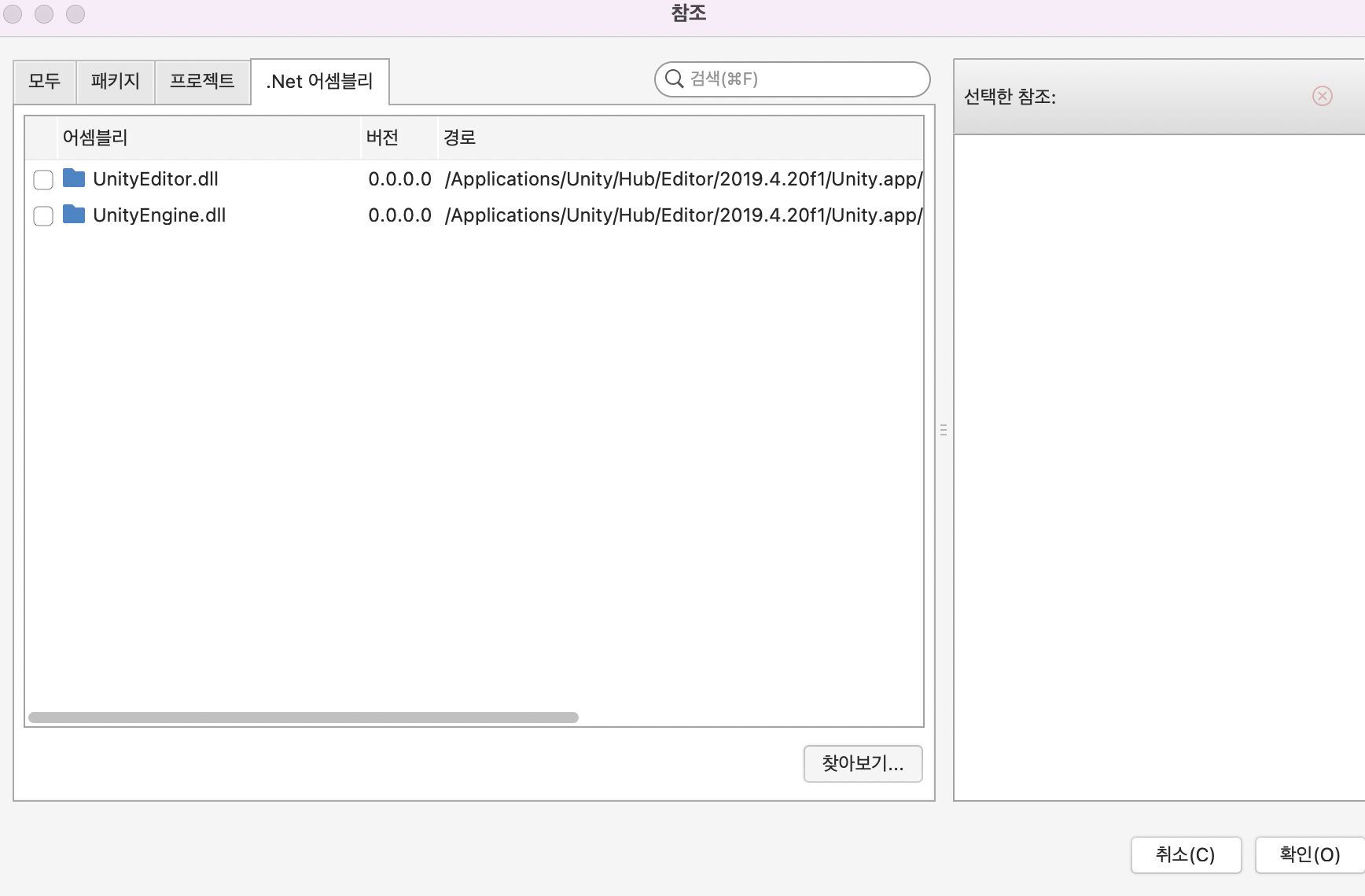 찾아보기 누른후 unityengine.dll 참조시킨다.