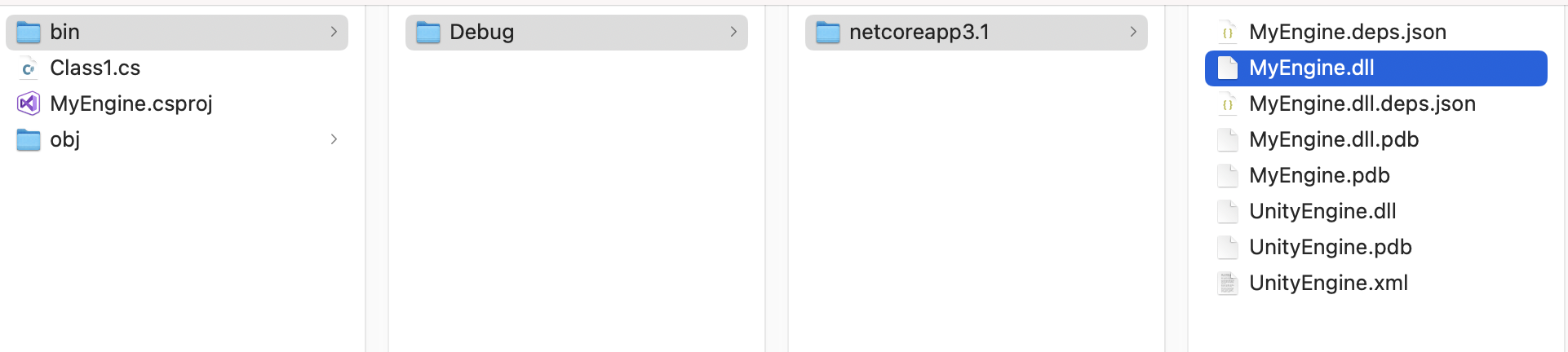 bin/Debug/netcore/ 로 가면 방금 빌드한 dll 파일이 있다.