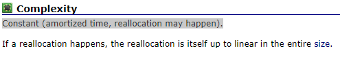 cpp reference의 push_back 연산의 complexity를 보면 다음과 같이 나타나 있는 것을 볼 수 있다.