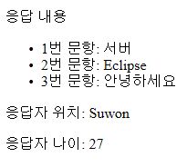 커맨드 객체 AnswerdData의 response를 순회하면서 출력하고 있다.